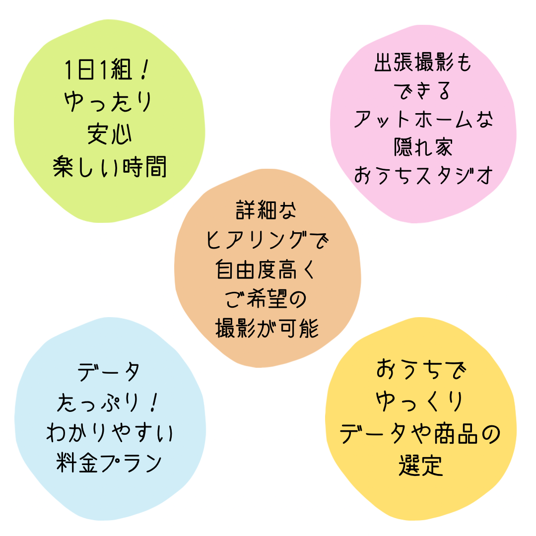 「今、この目にカメラがあれば…」を叶える!赤ちゃんの成長は早いから、「日常」も過ぎ去るのは一瞬…だからこそ今しかない「日常のナチュラルな可愛さ」を収めます。 ママが我が子の愛しさを感じたあの時の「キュン♡」とした気持ちを、いつでも… 心が動いた瞬間を切り取った写真は、いつでもその時の想いに戻れる。提供できるのは、ママと赤ちゃんがゆったりと安心して「楽しい♡」「感動!」を体験できる、穏やかな撮影時間。 ママや赤ちゃんに寄り添いながら一緒に作り上げ、 撮影しているときの空気まで残した、想いのよみがえる写真になるように。 いつでも気軽に、ずっと頼れるフォトグラファーに。同じ女性であり母だから、友達のように感覚を共有しながら、気軽に相談・撮影をお任せできる。 成長していくお子様とご家族にずっと寄り添えるフォトグラファー。 |